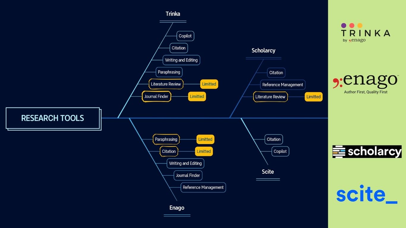 Artificial intelligence (AI) tools are revolutionizing the research landscape by streamlining various aspects of the research process. This article compares several AI tools for researchers, highlighting their unique features and applications. Tools like Trinka and Enago assist in writing and editing, while platforms such as Scholarcy and Scite enhance citation management and research discovery.